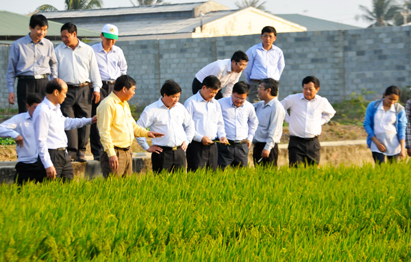 Thứ trưởng Bộ Nông nghiệp và PTNT cùng các đại biểu thăm mô hình trồng giống lúa An Sinh 1399 của Công ty CP Giống cây trồng Nha Hố
